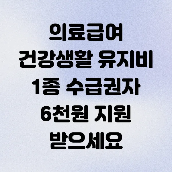 저소득층의 의료 안전망, 의료급여! 그중에서도 1종 수급권자 에게는 매월 6천 원의 건강생활유지비 가 지원됩니다. 외래 진료 시 본인부담금 차감에 사용 가능한 이 지원금, 놓치지 않고 꼭 받으셔야죠! 본인부담면제자와 급여제한자를 제외한 모든 1종 수급권자분들은 주민센터나 보건복지상담센터( ☎ 129 )에서 자세한 정보를 확인하세요. 건강생활유지비 지원, 꼼꼼하게 챙겨서 알뜰하게 건강 챙기세요~!