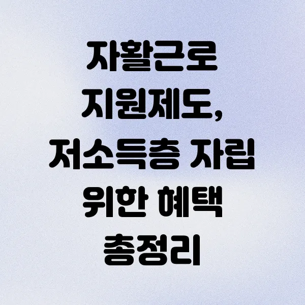 자활근로 지원제도의 가장 큰 매력은 참여자의 특성을 고려한 맞춤형 지원 이라고 할 수 있겠습니다. 근로 능력과 상황에 맞춰 다양한 유형의 자활사업에 참여할 수 있도록 지원하며, 각 유형별로 제공되는 혜택은 다음과 같습니다.