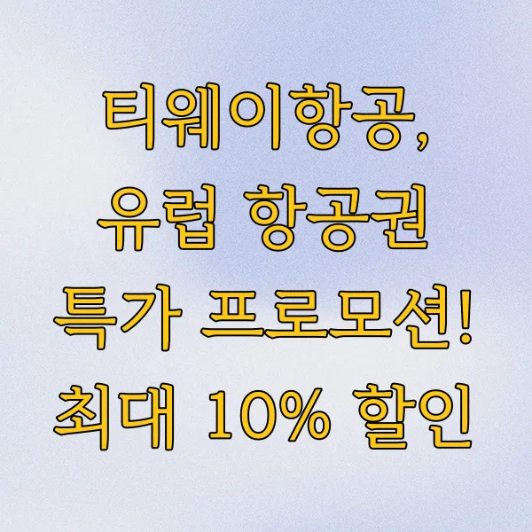 다구간 예매, 추가 할인 쿠폰, 티웨이플러스 회원 혜택까지! 유럽 여행 준비, 티웨이항공과 함께라면 걱정 끝! 자세한 내용은 아래에서 확인하세요! 😉