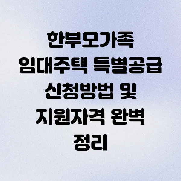 주거 걱정에 한숨짓는 한부모가족 여러분, 희망을 놓지 마세요! 든든한 지원, 바로 임대주택 특별공급이 있습니다. 한부모가족이라면 누구나 궁금해할 지원 자격, 신청 방법, 필요 서류, 선정 기준까지 꼼꼼하게 알려드릴게요. 내 집 마련의 꿈, 특별공급으로 이루어 보세요! (키워드: 한부모가족, 임대주택, 특별공급, 신청방법, 지원자격, LH, 주거지원)